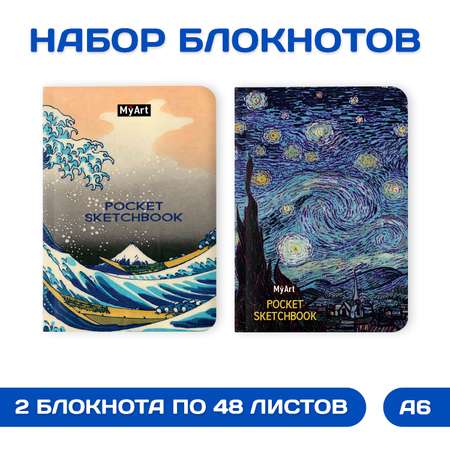Блокнот Проф-Пресс Pocket скетчбук от MyArt 104х146 мм 48 листов. В наборе 2 шт Большая волна+Звёздная ночь