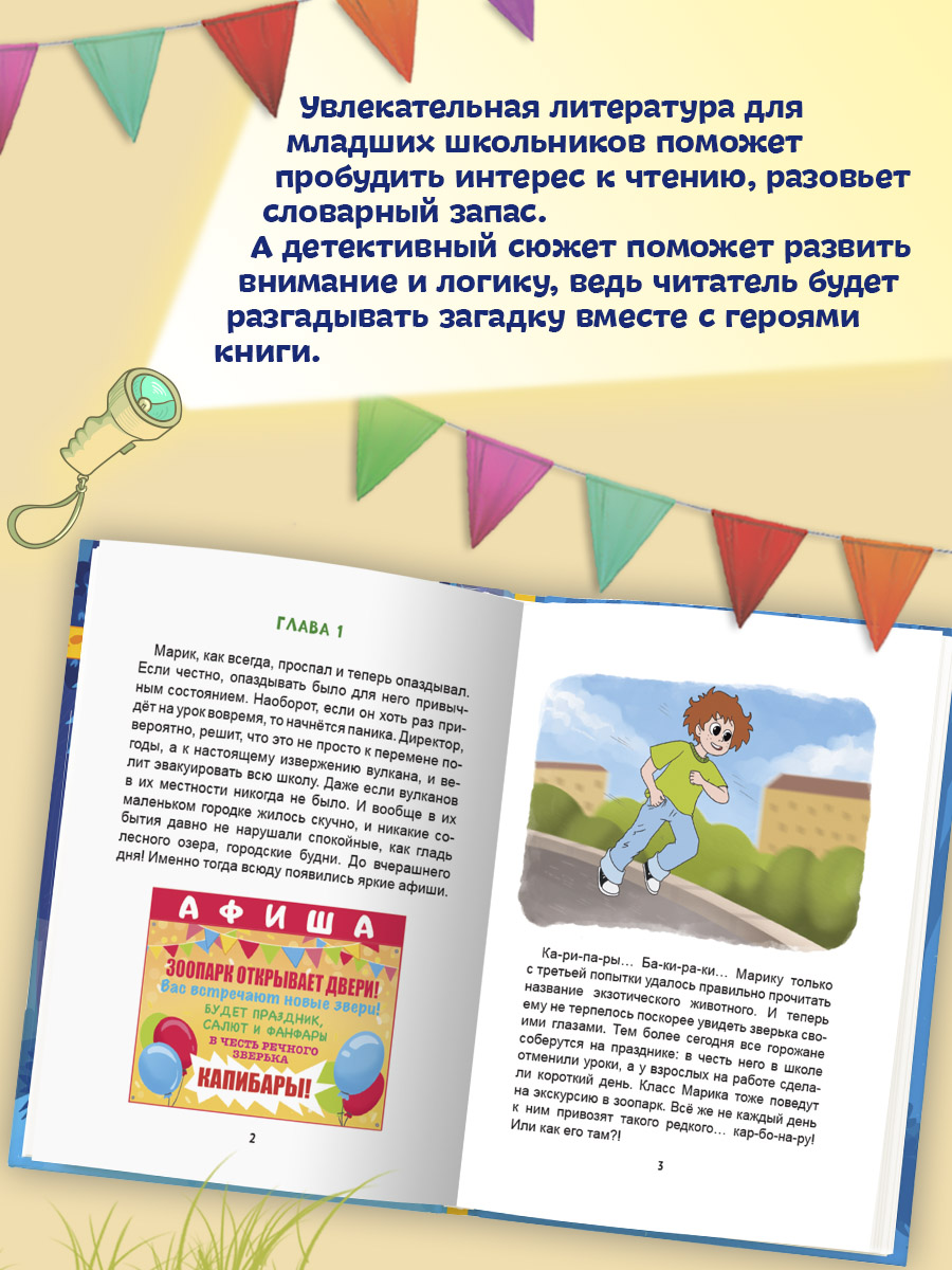 Детективный жанр стал одним из самых любимых среди детской аудитории из-за захватывающих приключений и загадок. В отличие от повседневных классических произведений, детектив - это лёгкая динамическая история с загадочным сюжетом, забавными диалогами и обаятельными героями. Издательский дом "ПРОФ-ПРЕСС" представляет вашему вниманию серию "Детский детектив", которая обязательно понравится детям от 6 лет. В книгах главные герои детективных историй разгадывают запутанные дела, которые произошли в их родном городе. Ребёнок пройдёт этот путь вместе со следопытами, параллельно развивая внимание и логику. Потому что нужно проявлять наблюдательность и дедуктивные способности, чтобы успеть за развитием сюжета. Интересные книги помогут разбудить любовь к чтению и развить словарный запас. Твёрдые обложки каждой книги делают издания прочными и долговечными. Их можно брать с собой в поездки, не боясь помять страницы. Детективы из этой серии содержат 80 страниц тактильно приятной бумаги, благодаря чему чтение будет приносить только удовольствие. Истории дополнены красочными иллюстрациями, которые задержат внимание активного ребёнка. Шрифт, удобный для чтения малышам, не напрягает глазки, поэтому они не устанут от долгого чтения. А истории написаны простым для понимания языком. «Загадка пропавшей капибары» и «Дело об опустевшем гнезде» автора Евгении Русиной подарит много ярких впечатлений в литературном путешествии.