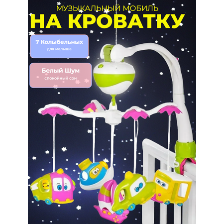 Детский мобиль на кроватку с игрушками подвесками машинками подарит много положительных эмоций вашему ребенку Музыкальная карусель с набором погремушек выполнена в красивой расцветке, с фигурками машинок и со звуковыми эффектами.