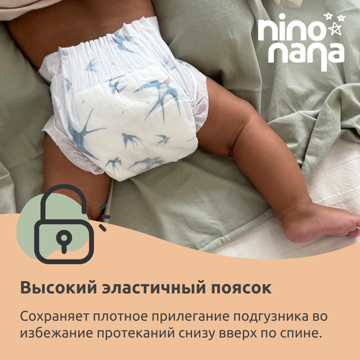 Эргономичность. Подгузники Nino Nana имеют более широкую впитывающую основу, идеально подходят детям любой комплекции,не натирая нежную кожу малышей. Высокий эластичный поясок обеспечивает комфорт и не сжимает животик.