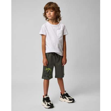 Шорты для мальчика Futurino цвета хаки, декорированные ярким принтом с хамелеоном.