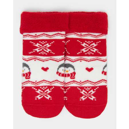 Махровые новогодние носки для девочки Моя Горошинка красного цвета с узором.