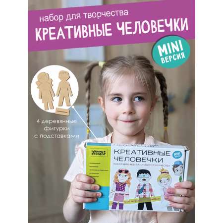 Представляем Вам нашу разработку - детский набор для творчества "Креативные человечки" в мини-формате. Наши креативные человечки давно стали хитом и получили признание и детей и взрослых. Это прекрасный вариант, если Вы выбираете подарок ребенку на выпускной в детском саду, 8 марта, Пасху, День рождения или любой праздник. Его также можно использовать как набор для выжигания по дереву. Набор для поделок "Креативные человечки мини" включает в себя 4 деревянные фигурки: 2 фигурки мальчика и 2 фигурки девочки. Деревянные заготовки будущих кукол дополнены подставкой для удобства. Наш игровой набор подойдёт и для девочки и для мальчика. Ребёнок 5, 6, 8, 10 лет может создать любого персонажа из деревянных фигурок, используя краски и кисть, которые входят в набор, а также забавные наклейки или любые другие подручные материалы. Это не просто набор для рисования в чемоданчике. Это 4 деревянные фигурки человечка, для которых можно придумать лицо, одежду, причёску. Фигурки можно раскрашивать, одежду лепить из пластилина, бумаги, салфеток, ткани.