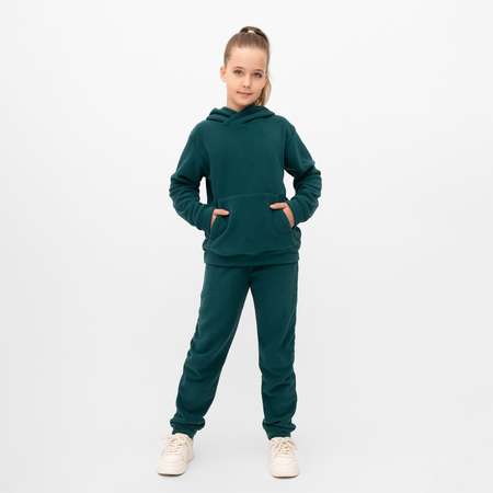 Особенности модели: детский флисовый костюм. Брюки на резинке в поясе, манжеты на штанинах. Толстовка с капюшоном и с карманом-кенгуру. Низ и рукава на манжете. Костюм сшит в однотонном цвете.