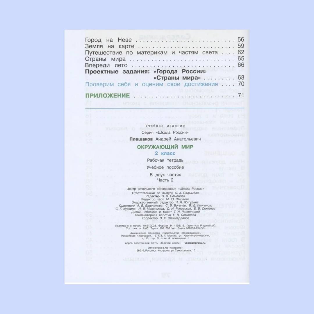 Рабочая тетрадь для 2 класса (Часть 2) подготовлена к учебнику «Окружающий мир. 2 класс» (авт. А. А. Плешаков), доработанному в соответствии с требованиями Федерального государственного образовательного стандарта начального общего образования (Приказ Министерства просвещения РФ № 286 от 31.05.2021 г.). В учебном пособии содержатся упражнения, которые помогают обучающимся обобщить и систематизировать знания, сформировать практические умения и навыки. Материал рабочей тетради позволяет реализовать системно-деятельностный подход, организовать дифференцированное обучение. Для занятий в семье предназначен вкладыш «Научный дневник» (в 1й части тетради) с заданиями, которые ребёнок с помощью взрослых выполняет в течение учебного года.