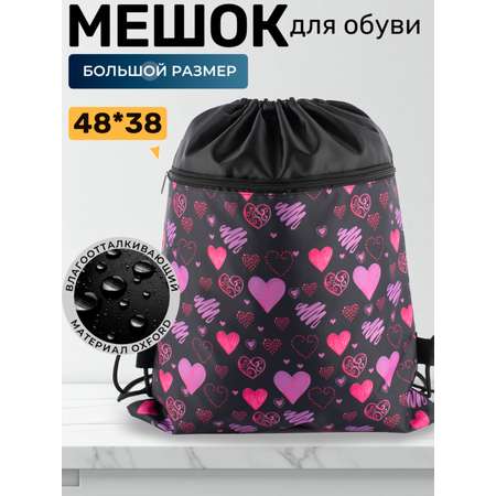 Сумка-мешок выполнена в ярком и уникальном принте сердечки и прекрасно подойдет девочкам в качестве подарка на любой праздник. Носить спортивный мешок можно как на спине, так и в руках за счет регулируемых лямок, которые обеспечивают комфорт в течение всего дня.