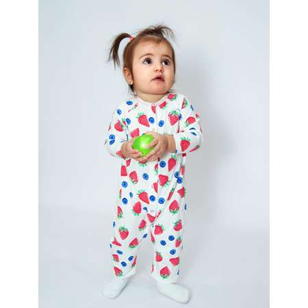 Комбинезон из кулирного полотна, выполнен в яркой расцветке: клубнички. Рукава длинные, застежка центральная на кнопки, уходит в ножки. Комбинезон не распашной (низ ножек зашит). Легкий комбинезон, в котором будет комфортно в любое время.