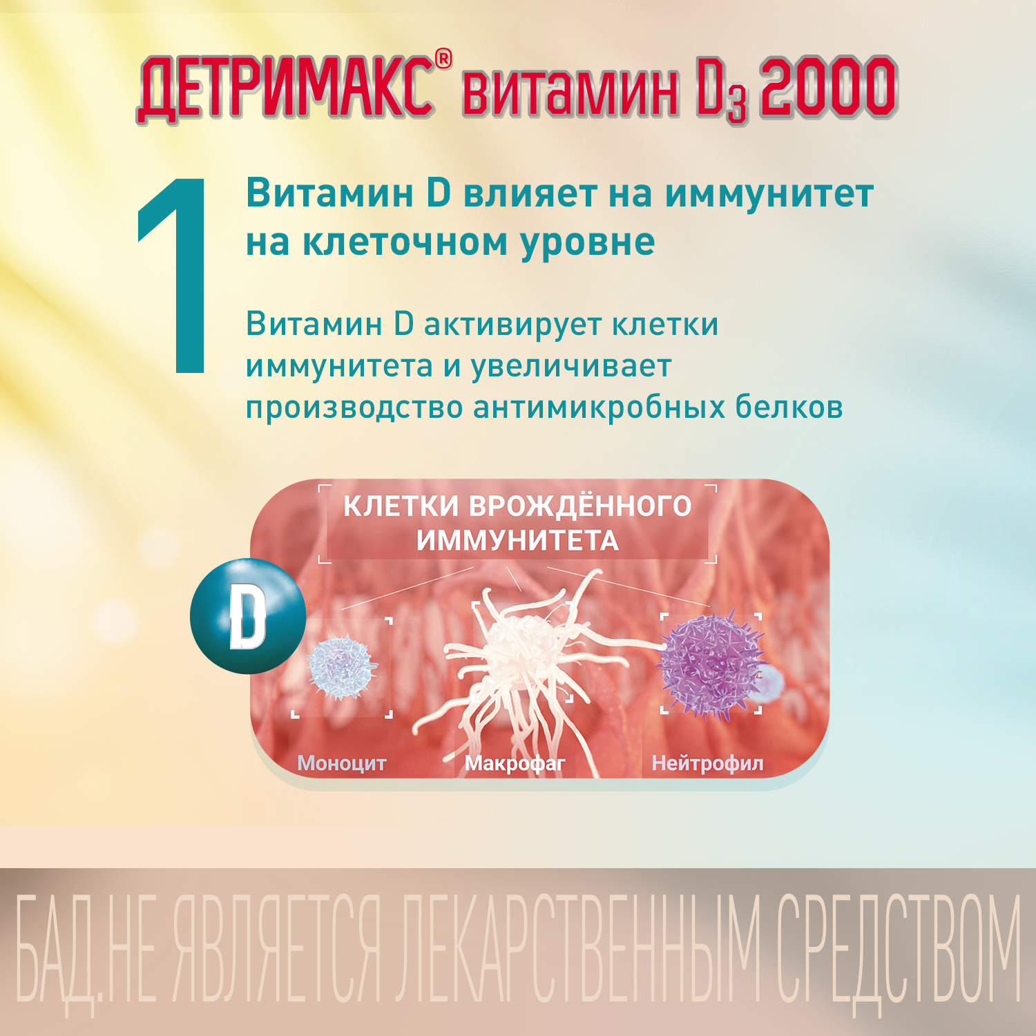 ДЕТРИМАКС витамин D3 2000 рекомендуется в качестве биологически активной добавки к пище - дополнительного источника витамина D3.