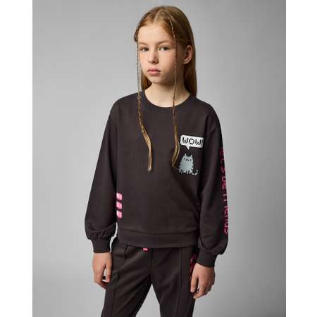 Тёмно-серый свитшот для девочки Futurino с цветным принтом.