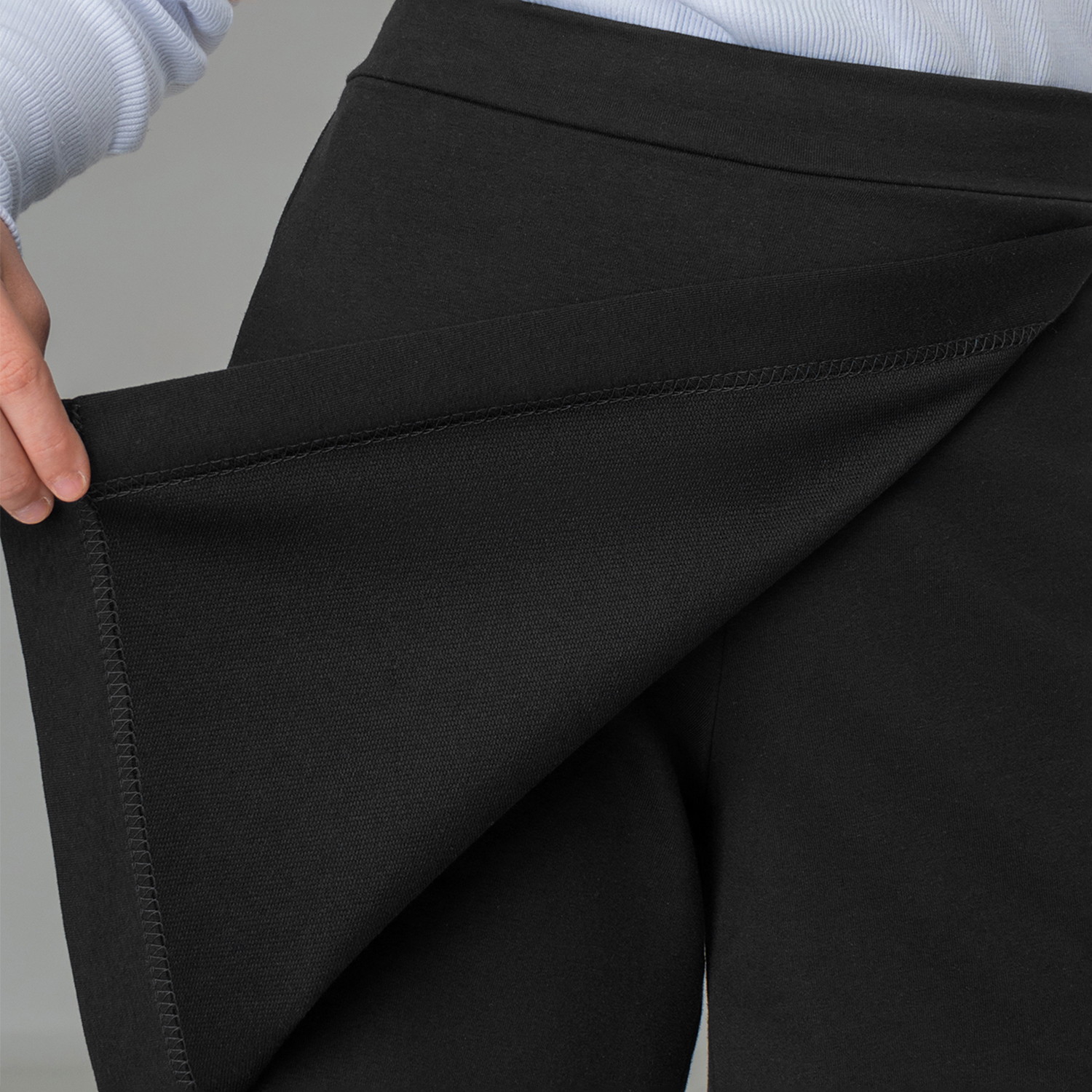 Обтягивающая детская юбка шорты дарит комфортную посадку по фигуре. Запах имитирует мини-юбку спереди. Пояс сзади на эластичной резинке, поэтому юбку легко надевать и снимать.