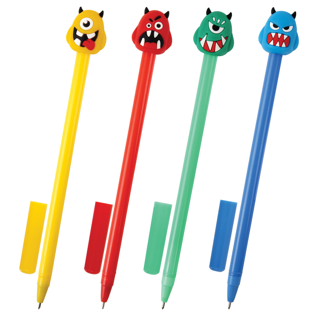 Шариковая ручка масляная ЮНЛАНДИЯ "Монстрик" с милой игрушкой на корпусе.
