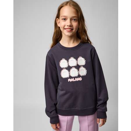 Тёмно-серый свитшот для девочки MOLANG с цветным принтом.