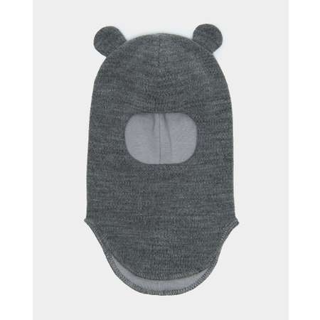 Однотонная шапка-шлем для мальчика Baby Go серого цвета с ушками-помпонами.