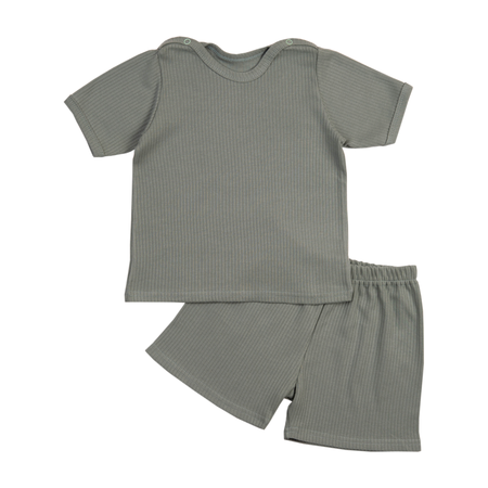 Материал мягкий и легкий, не раздражает нежную кожу ребенка и хорошо вентилируется.Благодаря использованию хлопка,комплект для новорожденного не способен вызвать раздражения.Имеет удобную застежку на кнопках на плече.Мягкие хлопковые шорты с поясом на резинке, не сдавливающей живот ребенка.