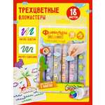Фломастеры Каляка-Маляка трехцветные утолщенные классические 18 цветов трехгранный корпус легкосмываемые
