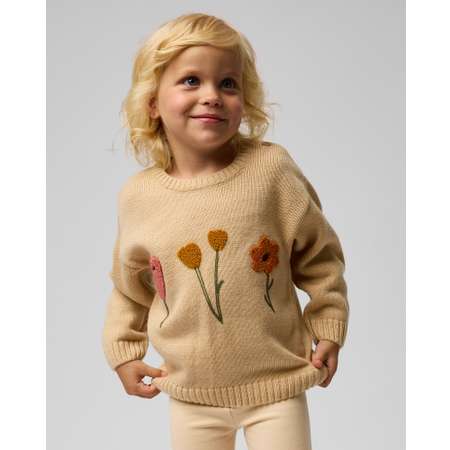 Бежевый джемпер для девочки Baby Go с объёмным цветочным декором.