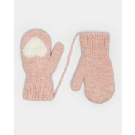 Розовые варежки для девочки Baby Go с объёмным декором в виде сердечек.