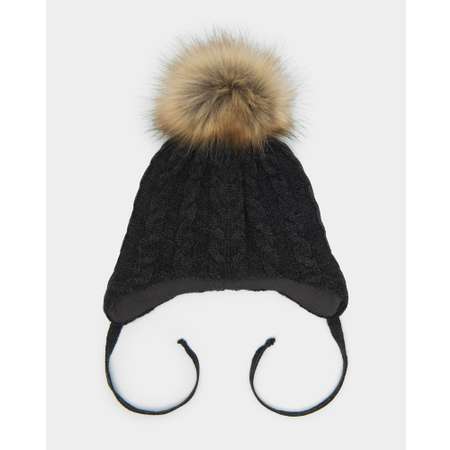 Шапка для мальчика Baby Go тёмно-серого цвета с узором "косичка". Декорирована помпоном из искусственного меха.