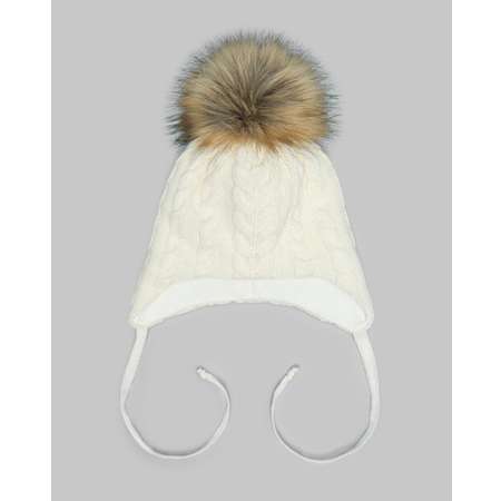 Шапка для девочки Baby Go молочного цвета с узором "косичка". Декорирована помпоном из искусственного меха.