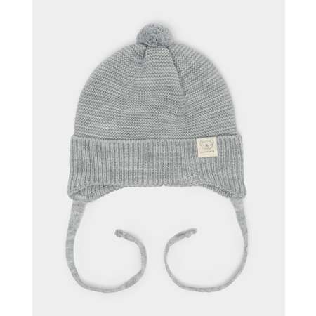 Шапка для мальчика Baby Go серого цвета с помпоном. Декорирована нашивкой.