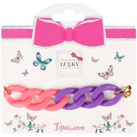 Нежный радужный браслет на руку от Lukky Fashion выполнен в виде цепочки золотого цвета и глянцевого пластика в сиреневых и розовых оттенках. Браслет цепочка добавит изюминку любому наряду своей игривостью и нежностью. Легкий и удобный, он подходит для любого времени года — будь то лето или зима. Легко сочетается с другими украшениями для девочек, добавляя мягкие и стильные акценты. Такой детский браслет станет важным элементом в коллекции бижутерии стильной малышки.