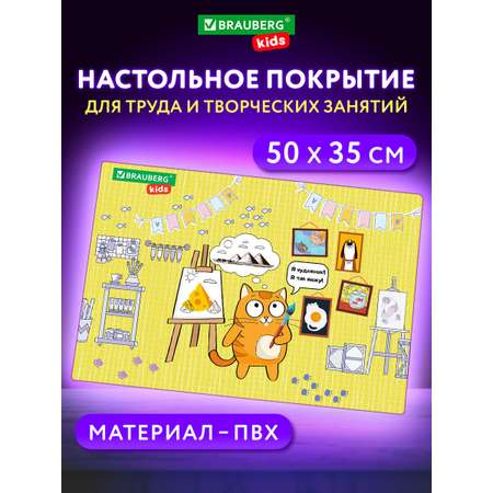 "Настольное покрытие BRAUBERG KIDS для труда и творческих занятий станет незаменимым помощником для юных художников и рукодельников. Это высококачественная клеенка, изготовленная из износостойкого ПВХ, отлично защищает рабочую поверхность от загрязнений во время рисования или других творческих процессов. Коврик для стола имеет размер 50х35 см, что позволяет легко накрыть парту или письменный стол, делая занятия более комфортными.