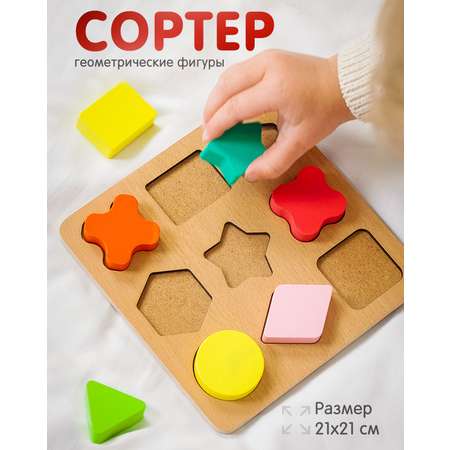 Сортер Монтессори ГЕОМЕТРИЧЕСКИЕ ФИГУРЫ (9 деталей) Alatoys развивающая деревянная игрушка