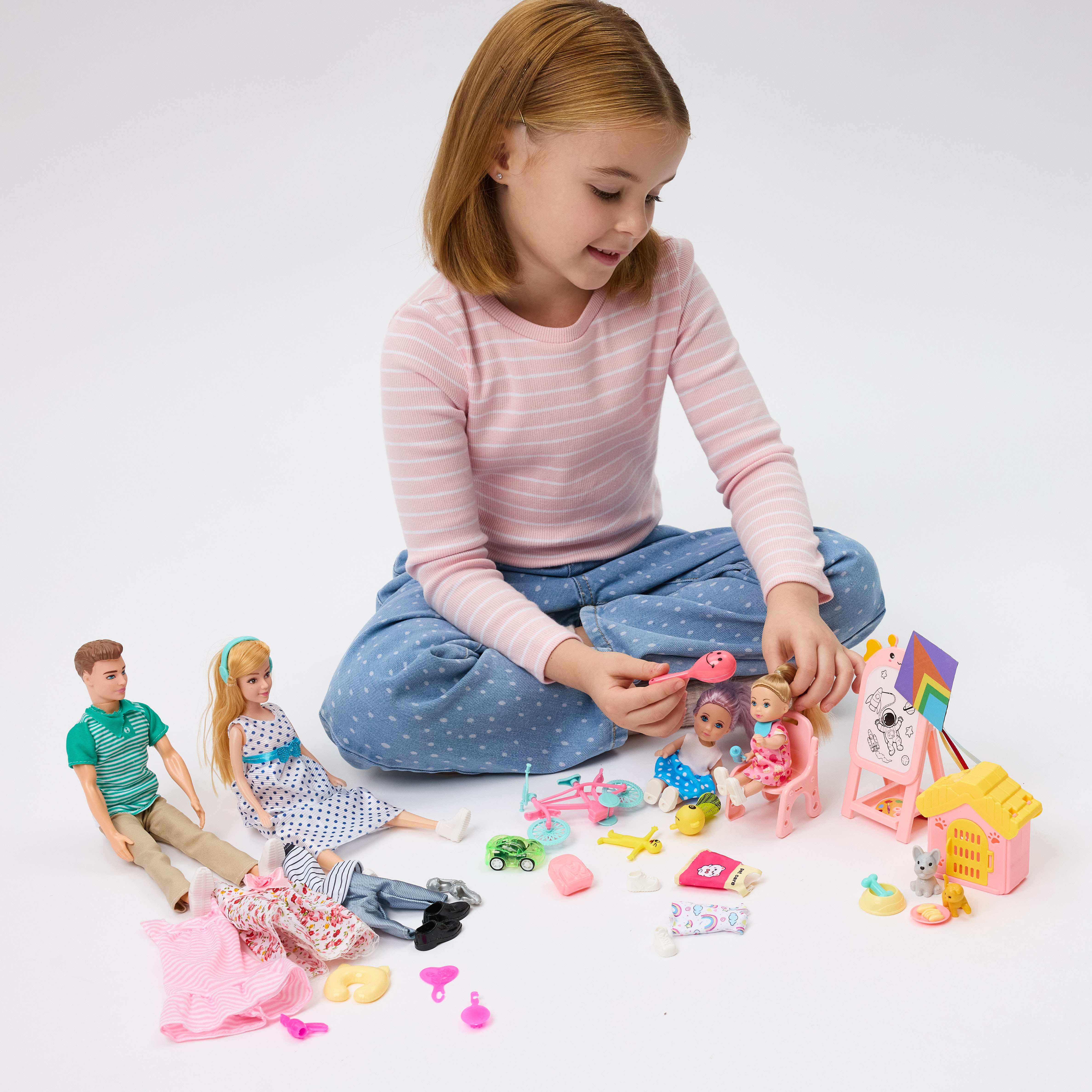Набор Demi Star «Семейный досуг» 6209-3 — это целая семья: мама, папа и две дочки. Прилагается множество разнообразных аксессуаров: одежда, обувь, украшения, игрушки, маленький велосипед. С ними живут очаровательные питомцы: собачка и котик. Набор позволит ребенку играть в ролевые игры, придумывать множество бытовых ситуаций, примерять на себя роль родителя.
