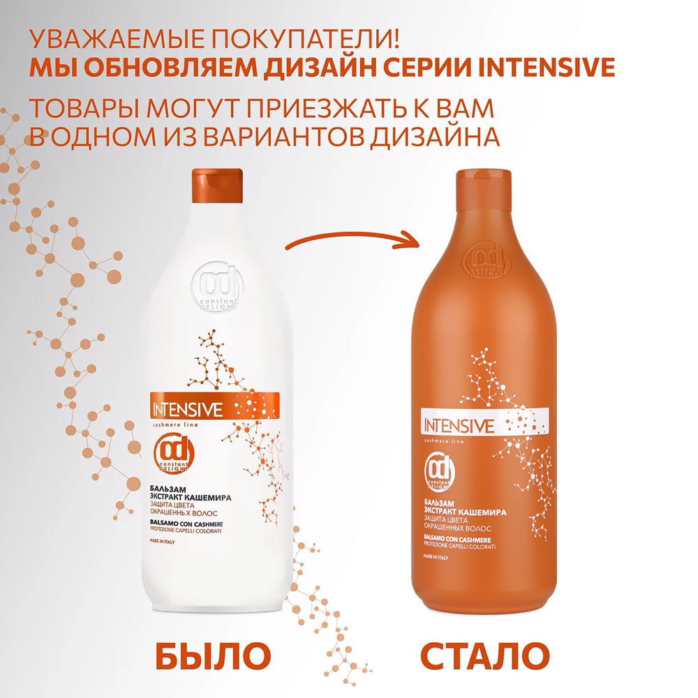 Профессиональный набор шампунь и бальзам защита цвета с экстрактом кашемира INTENSIVE для окрашенных волос CONSTANT DELIGHT создан для ухода за окрашенными и химически обработанными волосами. Подходит для тех, кто стремится сохранить насыщенность оттенка, избежать сухости и тусклости после окрашивания или завивки.