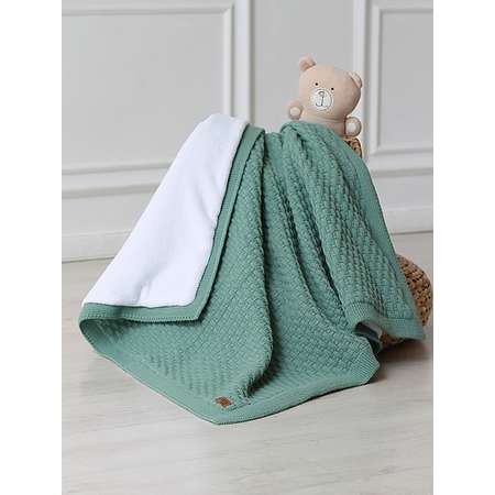 Плед вязаный утеплённый Совенок Дона 100x100 зелёный