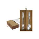 В комплект входит ложка и вилка, упакованные в коробку из картона. Длина приборов составляет 27 см.