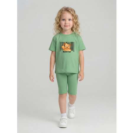 Комплект одежды для девочки KUZA состоит из футболки и коротких лосин. Футболка для девочки модели оверсайз, со спущенным плечом. Лосины - велосипедки для девочки облегающие, короткие. Костюм для девочки изготовлен из мягкого хлопка с добавлением эластичных волокон - 92% хлопок, 8% эластан. Идеальная одежда для девочки в детский садик и для прогулок на улице летом.