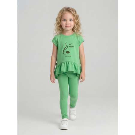 Комплект одежды для девочки KUZA состоит из туники и лосин. Комплект для девочки изготовлен из кулирки с эластаном (92% хлопок, 8% эластан).