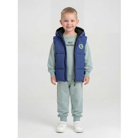 Жилетка для мальчика KUZA прямого кроя с удобным капюшоном. Жилет для мальчика изготовлен из материала - Дюспо, влагозащитный, воздухообменный и ветрозащитный.