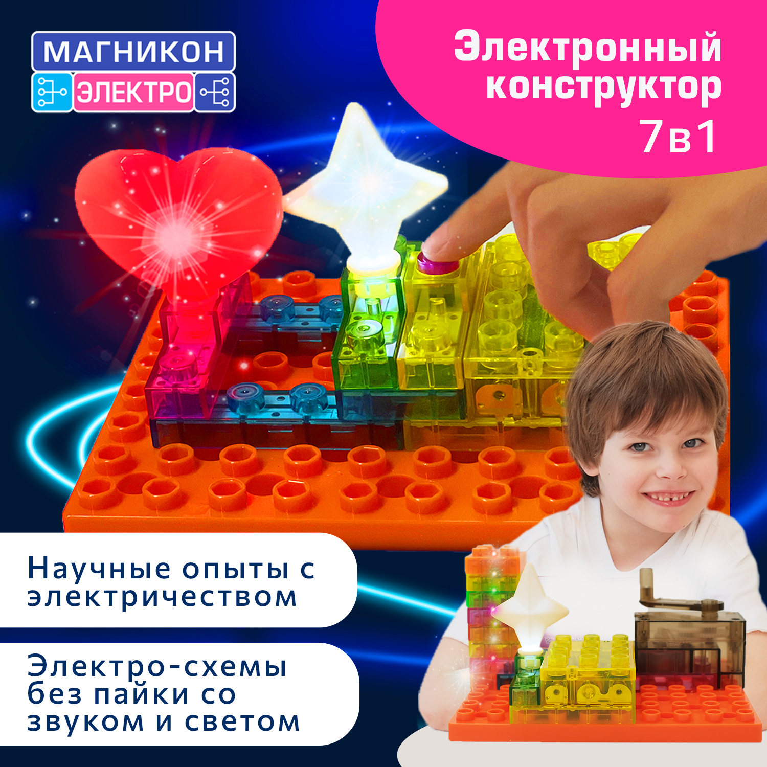 Благодаря электронному конструктору для детей Ваш ребенок сможет безопасно экспериментировать с электричеством, познает азы программирования и конструирования, сможет построить множество электронных схем и запустить их. Набор для опытов с электричеством Магникон электро дает большие возможности для развития аналитических и творческих способностей, так как ребенок сможет собирать схемы не только по инструкции, но также миксовать элементы и придумывать свои постройки и схемы.
