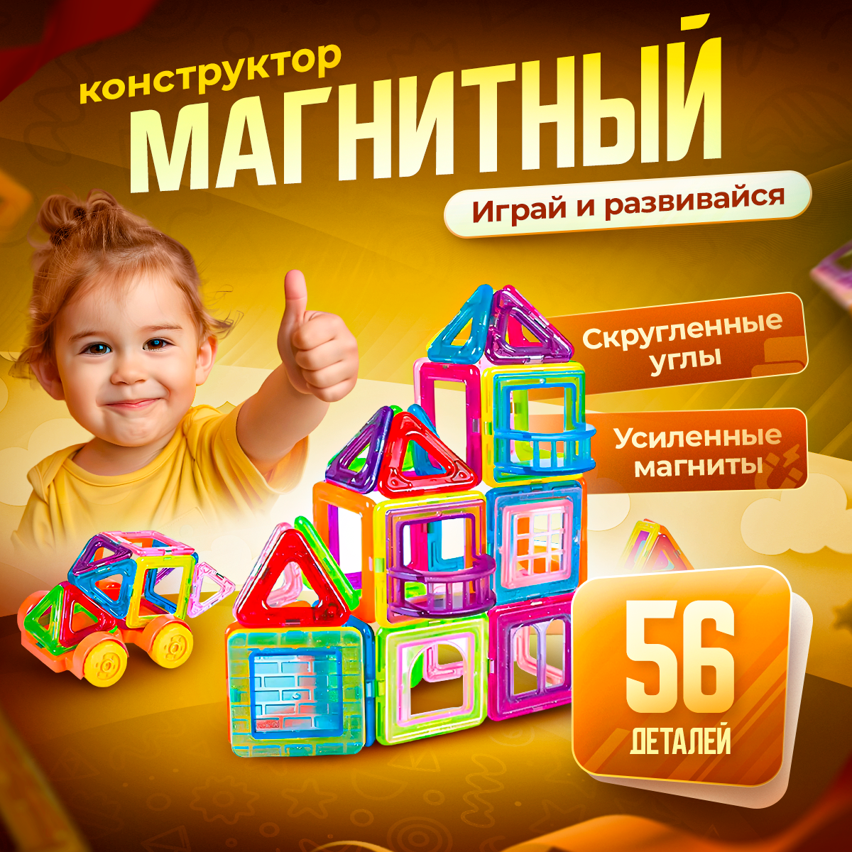 Конструктор BelliniToys магнитный развивающий 56 деталей