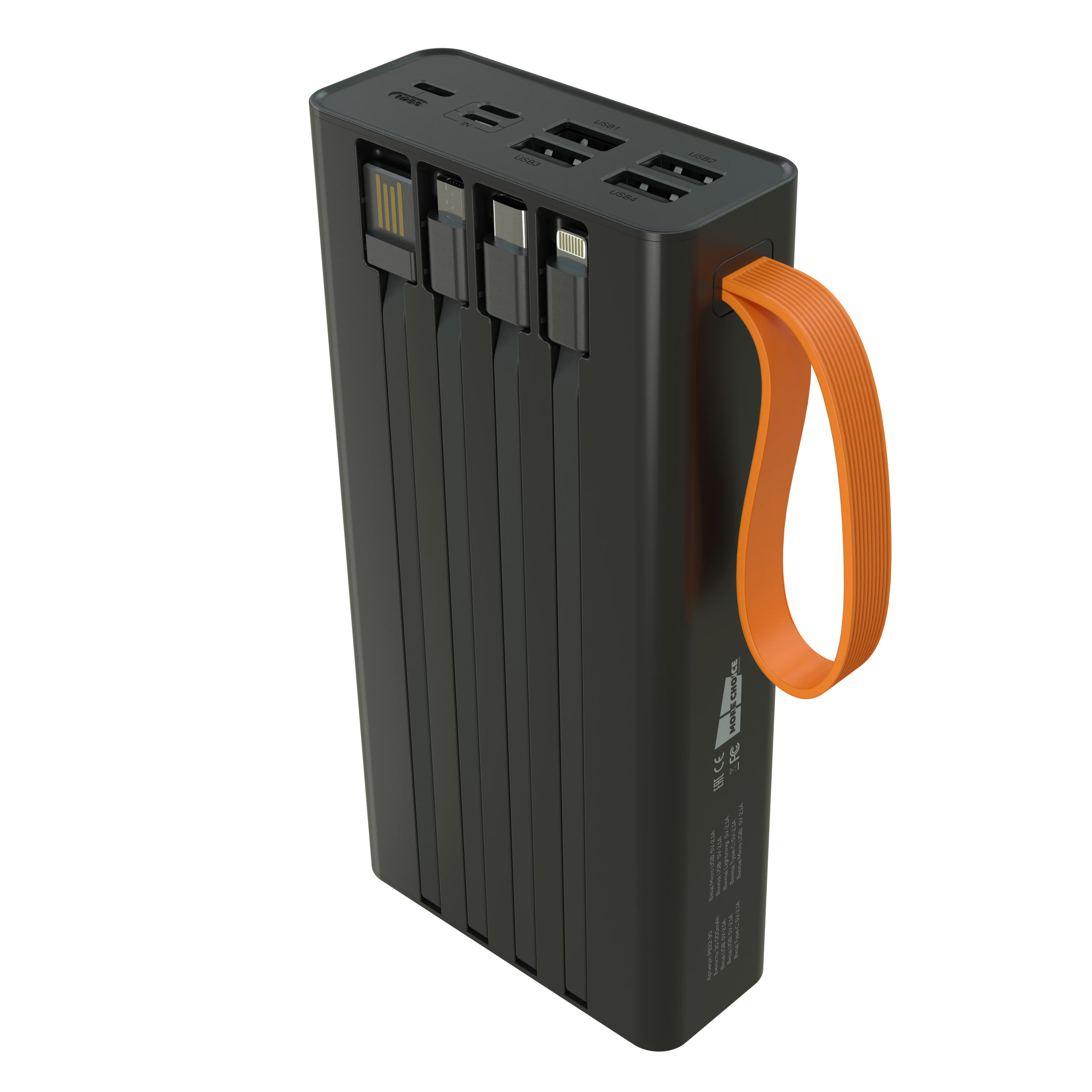 Этот повербанк оснащен выходными разъемами USB и Type-C, что позволяет одновременно заряжать несколько устройств. Входные разъемы type-C и microUSB обеспечивают быструю и удобную зарядку самого повер банка. Кроме того, в нем предусмотрен встроенный кабель Lighting, Type-C, MicroUSB и USB, что делает его использование еще более удобным и практичным.