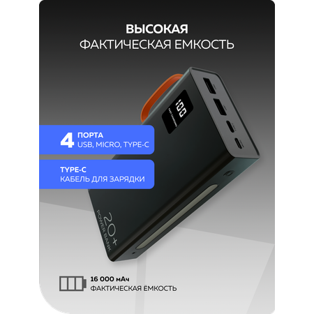 Внешний аккумулятор More Choice — это ваш надежный партнер в мире технологий, созданный для активных пользователей. С емкостью аккумулятора 20000mAh он обеспечивает мощный запас энергии, позволяя вам заряжать смартфоны, планшеты и другие устройства в любое время и в любом месте.