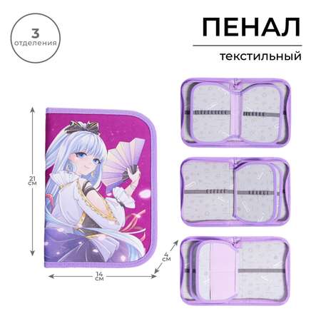 Пенал Calligrata 3 секции вкладка внутри 140 х 210 х 40 мм тканевый «Аниме»