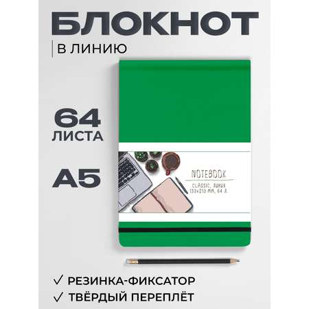 Блокнот Проф-Пресс в линию 64 листа 130х210 мм MyArt Classic. Зелёный