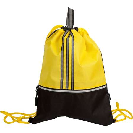 Сумка для сменной обуви и спортивных секций "deVENTE. Black" 34,5x44,5 см, 1 отделение, внешний карман на молнии, водоотталкивающая ткань, светоотражающие элементы, люверс для вентиляции, на веревочной завязке, с петлей для повеса и переноски, черная с желтымЦены в интернет-магазине могут отличаться от розничных магазинов.