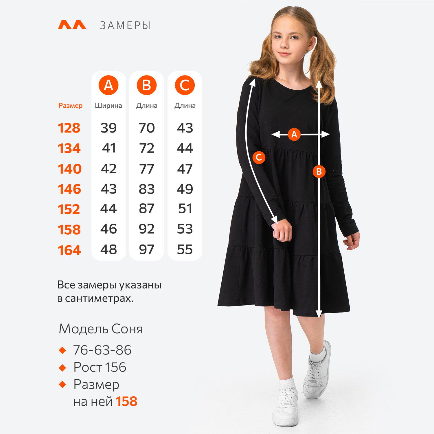 Никаких компромиссов – только красота и удобство! Воздушное платье с многоярусной юбкой идеально подходит для мечтательных девчонок. Демисезонное черное платье с длинным рукавом для девочки подростка выполнено из 100% хлопкового трикотажа.