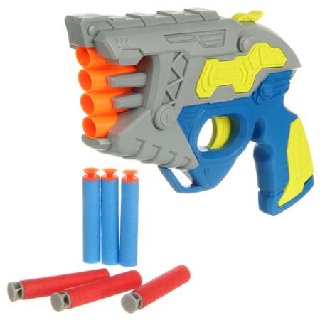 Игрушка пистолет с мягкими патронами в яркой расцветке и оригинальном дизайне.