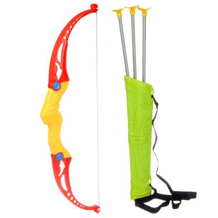 В комплекте лук, 3 стрелы на присосках, колчан. Колчан для стрел вмещает все стрелы, входящие в набор. Есть плечевой ремешок на карабинах.