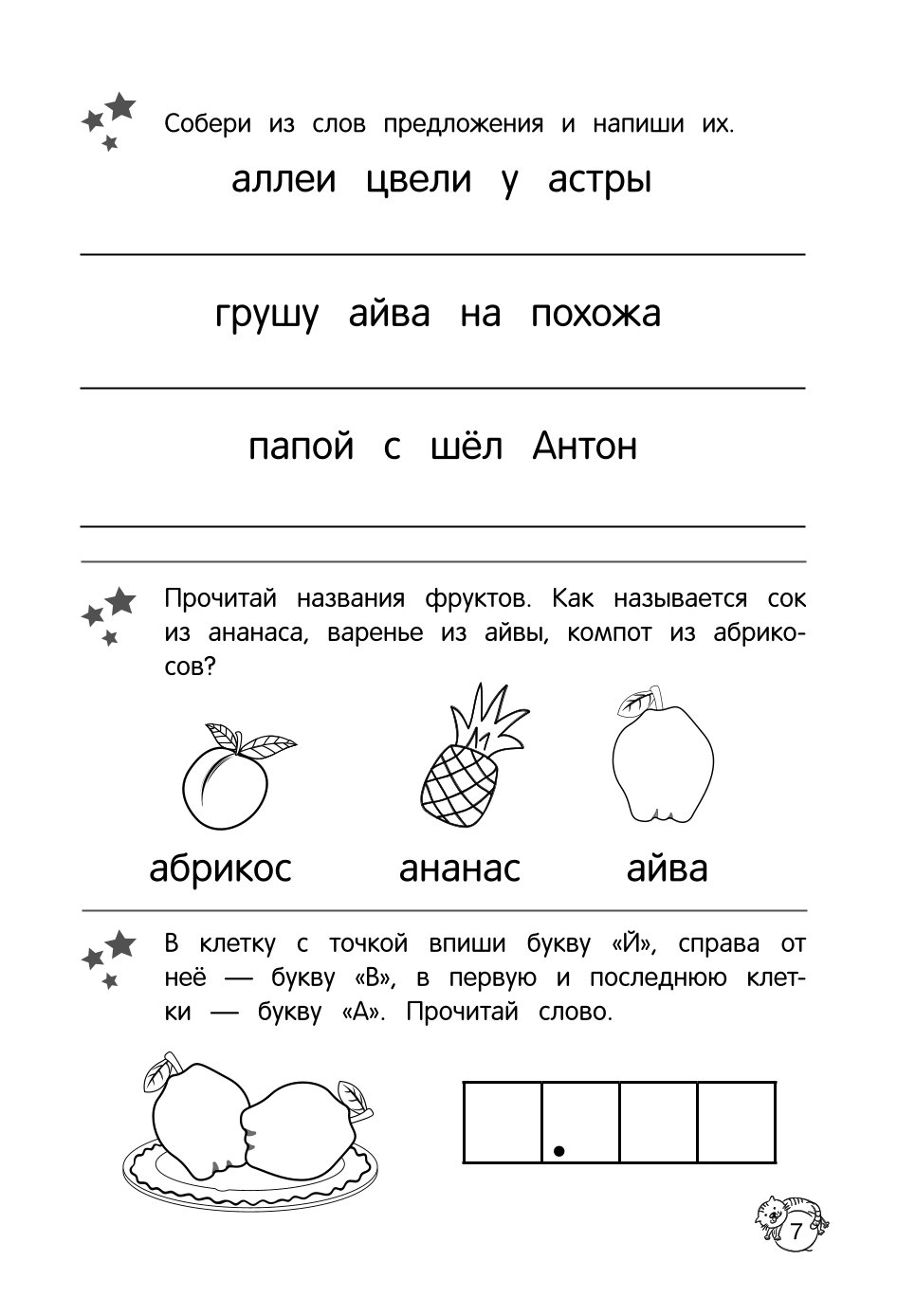 Благодаря этому пособию будущий первоклассник сможет потренировать навык самостоятельного осмысленного чтения. Выполняя простые увлекательные задания ребёнок, будет отвечать на вопросы по содержанию, научится пересказывать с опорой на картинки, будет определять место слога в слове, составлять слова из букв и других слов, различать предложения по интонации, разгадывать ребусы, расшифровывать слова, а также обогатит словарный запас, разовьет мышление и связанную речь. Адресовано старшим дошкольникам, их родителям и воспитателям.
