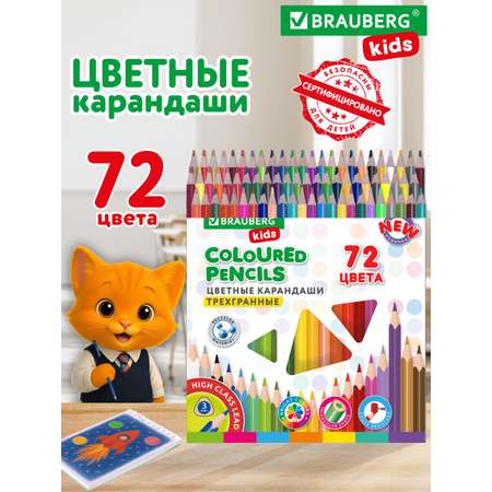 Карандаши цветные Brauberg для рисования детям в школу набор 72 цветов мягкие