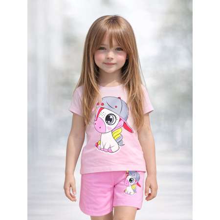 Костюм - футболка с шортами, выполнен из экологичной хлопковой ткани-кулирное полотно.Футболка прямого кроя. Вырез горловины округлый, выполнен из эластичной ткани рибана, рукав втачной, короткий. Полочка декорирована тематическим принтом .Трикотажный комплект футболка и шорты отлично подойдет для детей на лето как повседневная одежда. Футболки с яркими, красивыми и разнообразными принтами. Очень удобные шорты с мягкой резинкой. Костюм с шортами для девочки легко стирается, не теряет цвет и форму, не скатывается. Детские костюмы для девочки из хлопка гипоаллергенны и хорошо пропускают воздух, поэтому в жаркий летний день в таком костюме будет очень комфортно и не жарко.