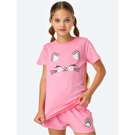 — пижамный комплект для девочки состоит из футболки с коротким рукавом и свободных шорт на мягкой резинке;