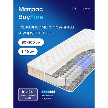 Матрас BuyFine – ваш финальный штрих в картине комфортного сна. Идеально подстраивается под изгибы тела, равномерно распределяет нагрузку и обеспечивает точечную поддержку позвоночника. Высота 16 см. Допустимый вес – 140 кг на одно спальное место. Независимый пружинный блок карманного типа – система Pocket: каждая пружинка автономна, в изолированном «кармашке» из спанбонда. Нет «эффекта гамака», а также нет «эффекта волны» – не передаются движения от партнера, что особенно актуально для пар.