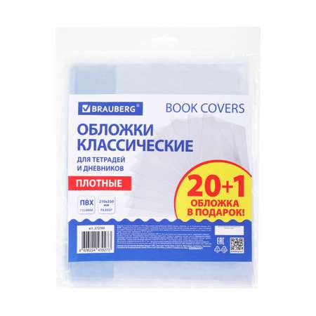 Обложки для тетрадей и дневников BRAUBERG – это идеальное решение для тех, кто заботится о сохранности своих школьных принадлежностей. Этот набор включает 20 обложек плюс одну в подарок, что делает его особенно выгодным. Прозрачные обложки толщиной 110 мкм надежно защищают тетради и дневники от внешних воздействий, продлевая их срок службы и сохраняя аккуратный внешний вид. Размер 210х350 мм идеально подходит для стандартных тетрадей и дневников, а два клапана обеспечивают удобное использование.